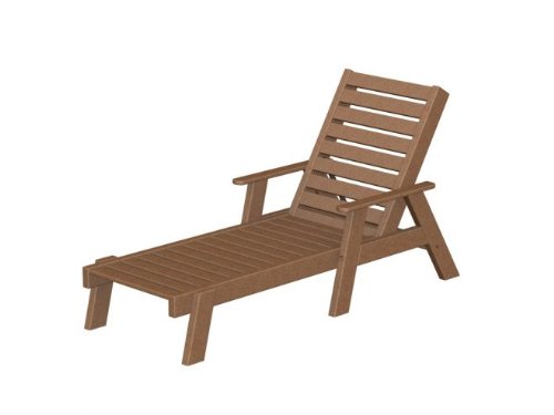 From the Oceanic Collection Bring the comfort of indoors to your outdoor patio with this sleek and stylish chaise lounge. Has the "look" of wood but its made from all recycled materials, so you can kick back, relax and feel good about your purchase. Features an adjustable back with 4 reclining positions. Chair has arm rests for extra comfort. Super-sturdy and built to last, even in strong winds you won't have to worry about your chair blowing away. All weather, resistant to all types of weather conditions including rain, snow, salt water, sun and ice. Contains UV-inhibited pigment systems that reduces fading. Does not absorb moisture and will not rot, splinter or crack.